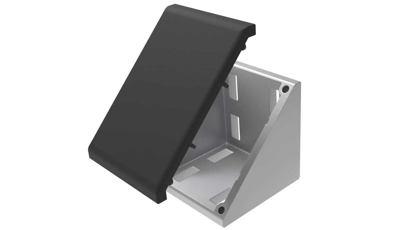 | Material: | Winkel: Aluminiumdruckguss, Abdeckkappe: Kunststoff PA, glasfaserverstärkt, Nutfixierung: Kunststoff |