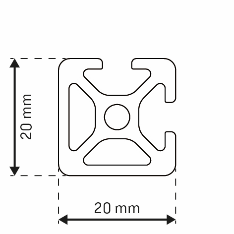 Alu - Profil AVP-I 5 Leicht 20 x 20 mm, 2-Nuten geschlossen, 90°, Nut 5 mm