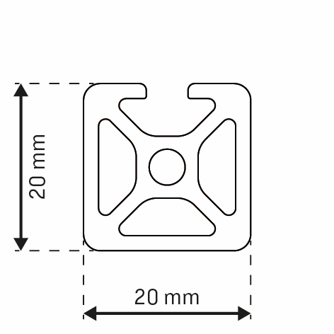 Alu - Profil AVP-I 5 Leicht 20 x 20 mm, 3-Nuten geschlossen, Nut 5 mm
