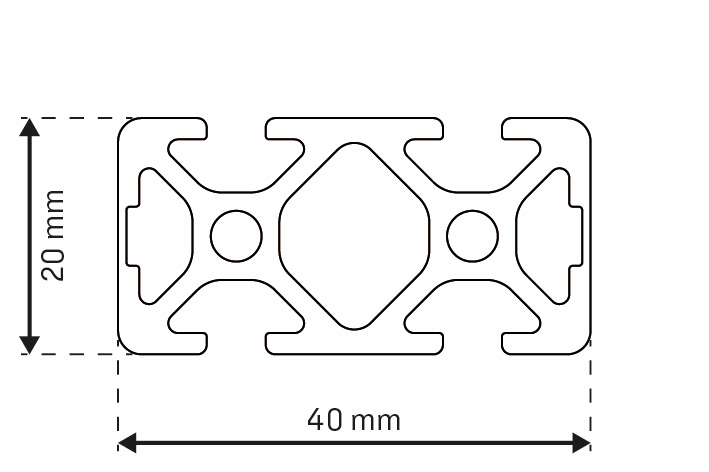 Alu - Profil AVP-I 5 Leicht 40 x 20 mm, 2-Nuten geschlossen, 180°, Nut 5 mm