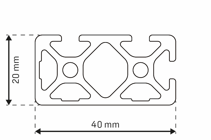 Alu - Profil AVP-I 5 Leicht 40 x 20 mm, 3-Nuten geschlossen, 90°, Nut 5 mm