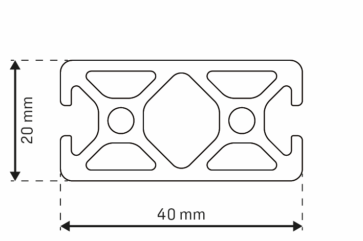 Alu - Profil AVP-I 5 Leicht 40 x 20 mm, 4-Nuten geschlossen, 180°, Nut 5 mm