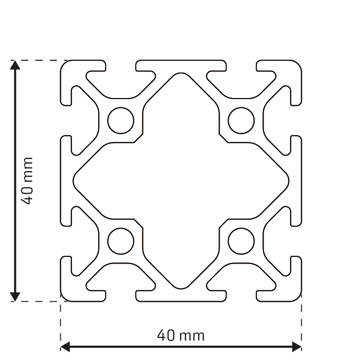Alu - Profil AVP-I 5 Leicht 40 x 40 mm, RA20, Nut 5 mm