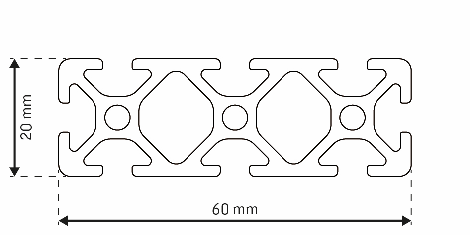 Alu - Profil AVP-I 5 Leicht 60 x 20 mm, Nut 5 mm
