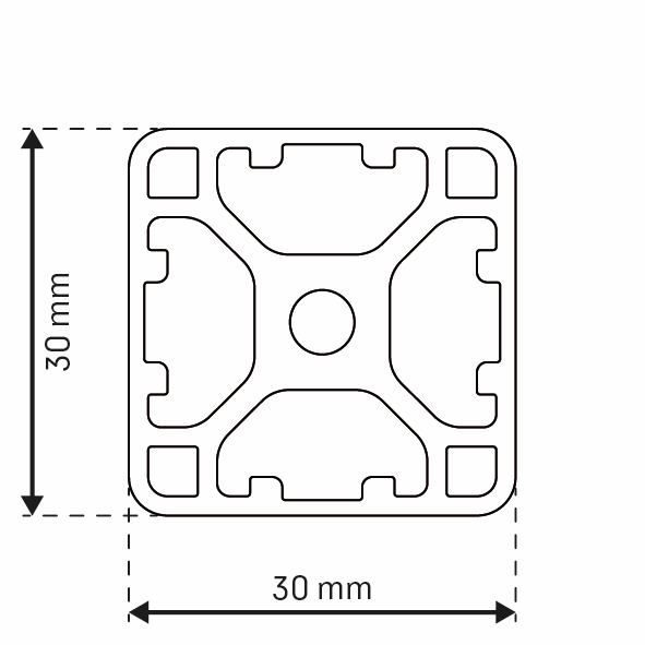 Alu - Profil AVP-I 6 Leicht 30 x 30 mm, Nut 6 mm, 4-Nuten geschlossen