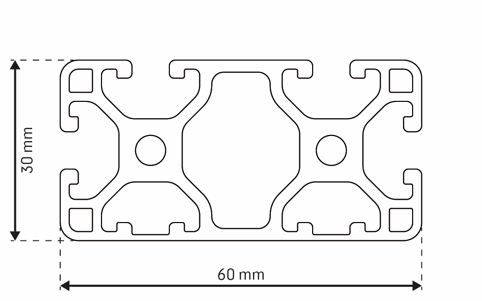 Alu - Profil AVP-I 6 Leicht 30 x 60 mm, 2-Nuten geschlossen, Nut 6 mm