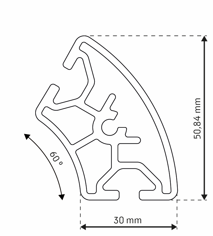 Alu - Profil AVP-I 6 Leicht 51 x 44 mm R30/60-60°, Nut 6 mm