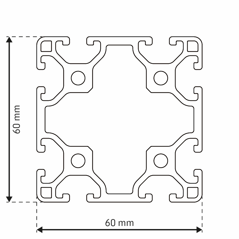 Alu - Profil AVP-I 6 Leicht 60 x 60 mm, Nut 6 mm, schwarz