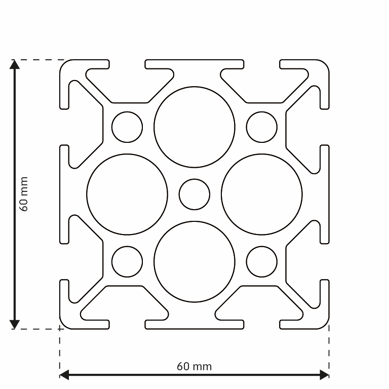 Alu - Profil AVP-I 8 Leicht 60 x 60 mm, Nut 8 mm