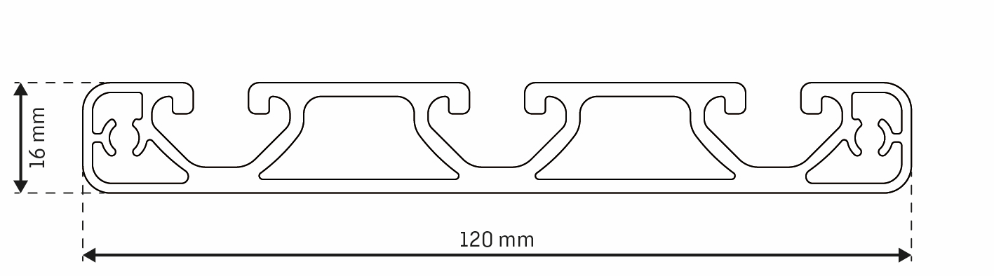 Alu - Profil AVP-I 8 Ultraleicht(Eco) 120 x 16 mm, Nut 8 mm