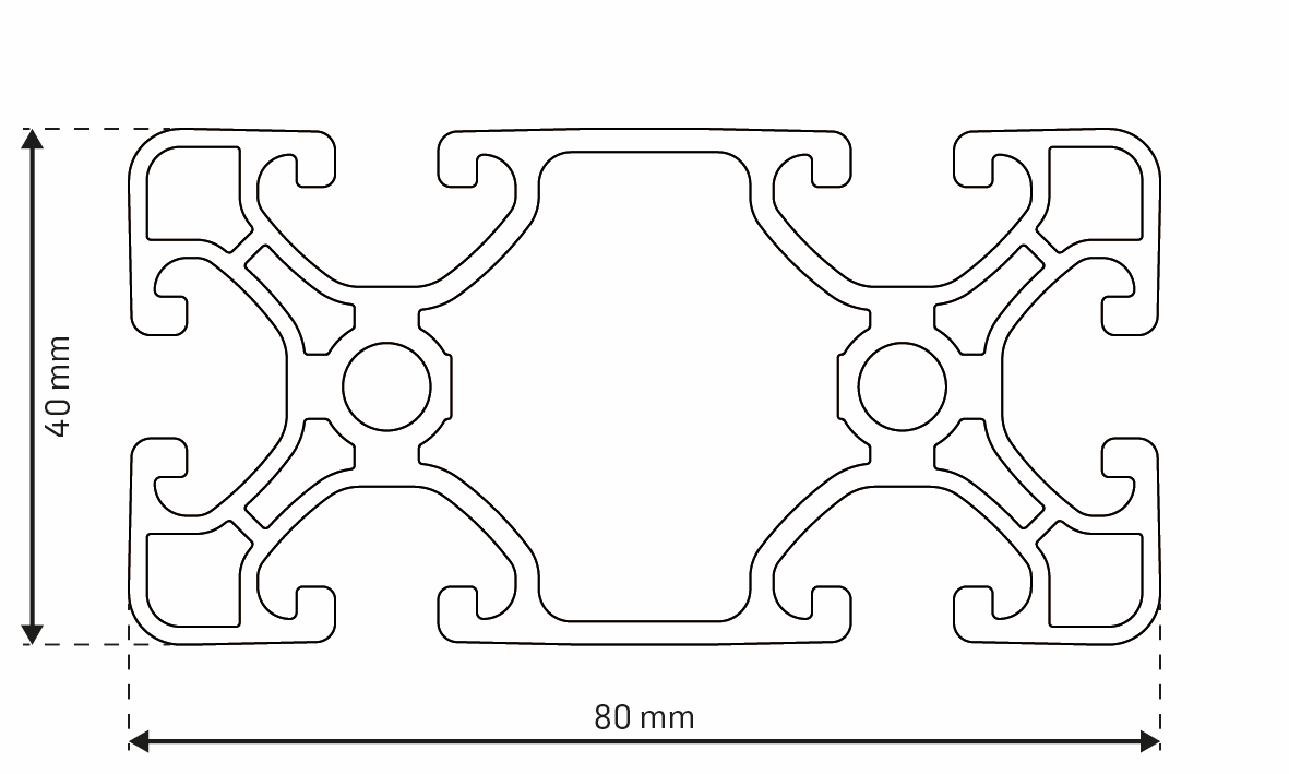 Alu - Profil AVP-I 8 Ultraleicht(Eco) 40 x 80 mm, Nut 8 mm