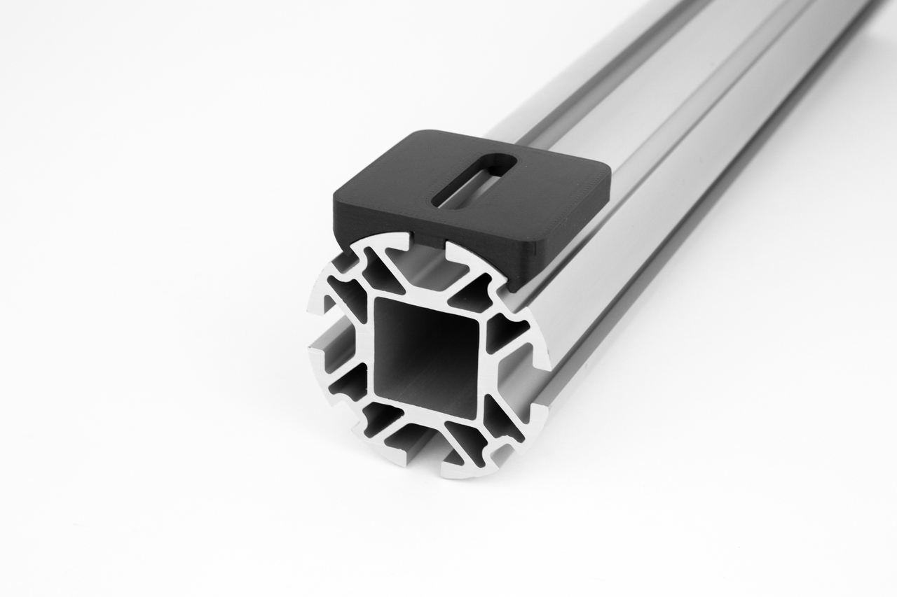 Kann für Anbauteile, die eine gerade Auflagefläche benötigen, eingesetzt werden. Die Auflageplatte wird einfach zwischen Anbauteil und Profil aufgeklickt.