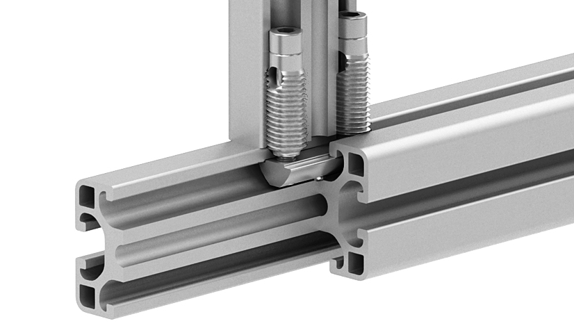Für die schnelle und stabile Verbindung von zwei Aluminiumprofilen ohne zusätzliche Bearbeitung des Profils sorgt ein selbstschneidendes Gewinde.