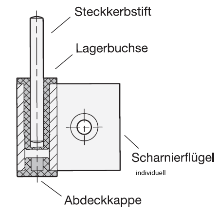 Das Bolzenset 1 ist als Zubehör für Scharniere mit zwei Scharnierflügeln konzipiert. Passend zur Montage von individuellen Scharniervarianten des Scharnierprofils.