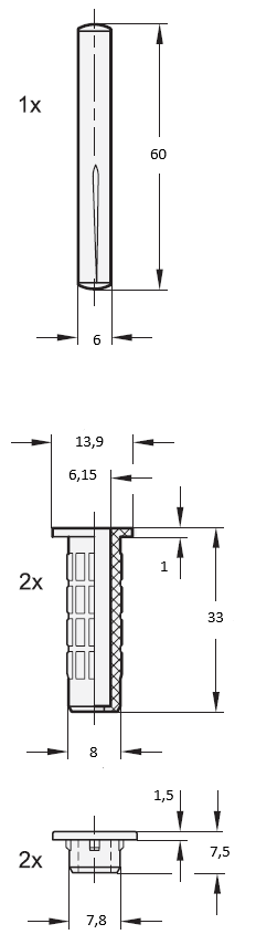 - 1x Steckkerbstift, L 60 mm, D 6 mm