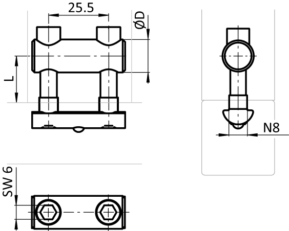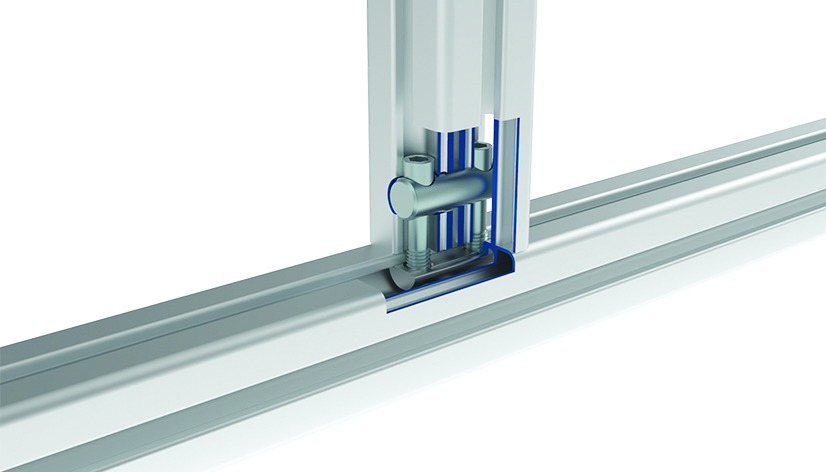 Für die rechtwinklige Verbindung zweier Aluminiumprofile. Erfordert zur Montage eine seitliche Bohrung mit Ø 14 mm in einem der Profil.