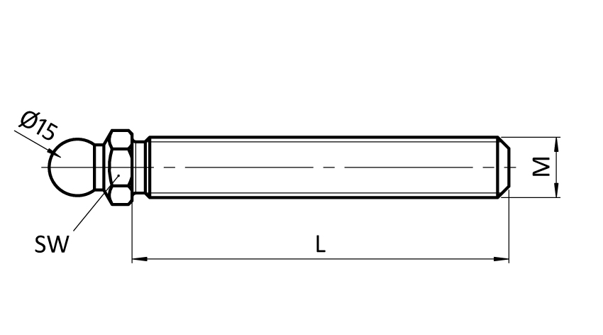 Gewindestange VA metrisch für Gelenkstellfüsse, Kugel 15, M8x40