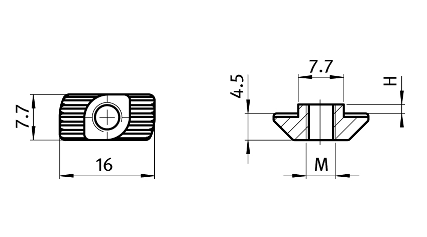 Hammermutter Nut 8 mit Drehhilfe, Stehhöhe 3,0mm, M5