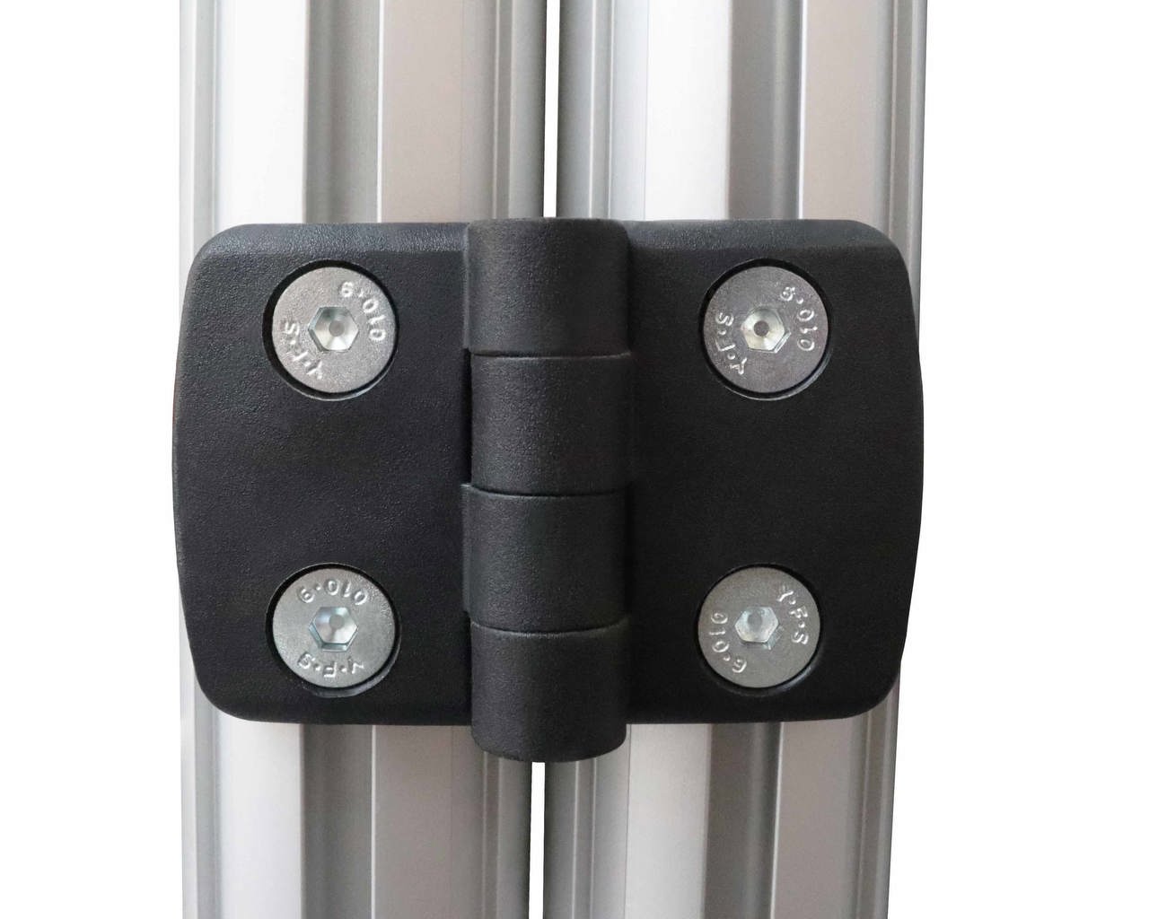 Zum Einsatz an NGP40 für Flächenelemente und Aluminiumprofile. Öffnungswinkel -40° bis 180°. Nicht aushängbar. Befestigung vorderseitig mit Senkschrauben M6.