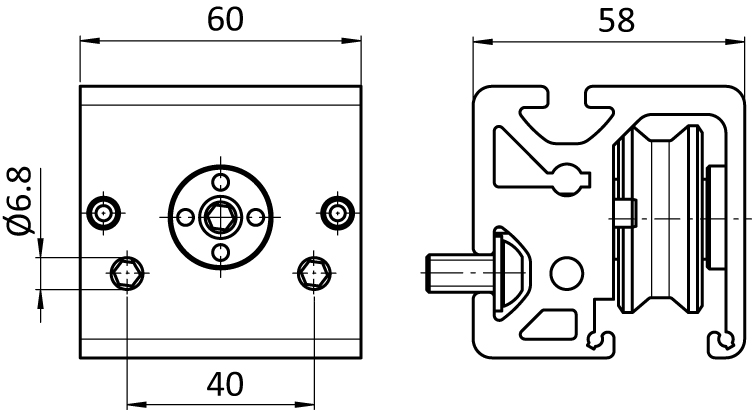 passende Abstreif-und Schmiervorrichtung Ø14 für Laufrollenprofil I Nut 8 (Set) siehe 228F091381S01