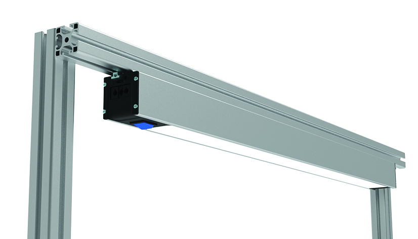 LED-Leuchte mit integriertem Dimmschalter zur Beleuchtung und Stromversorgung. Rückseitig mit Nut 8 versehen, eignet sie sich zur einfachen Montage an Aluprofilen.
