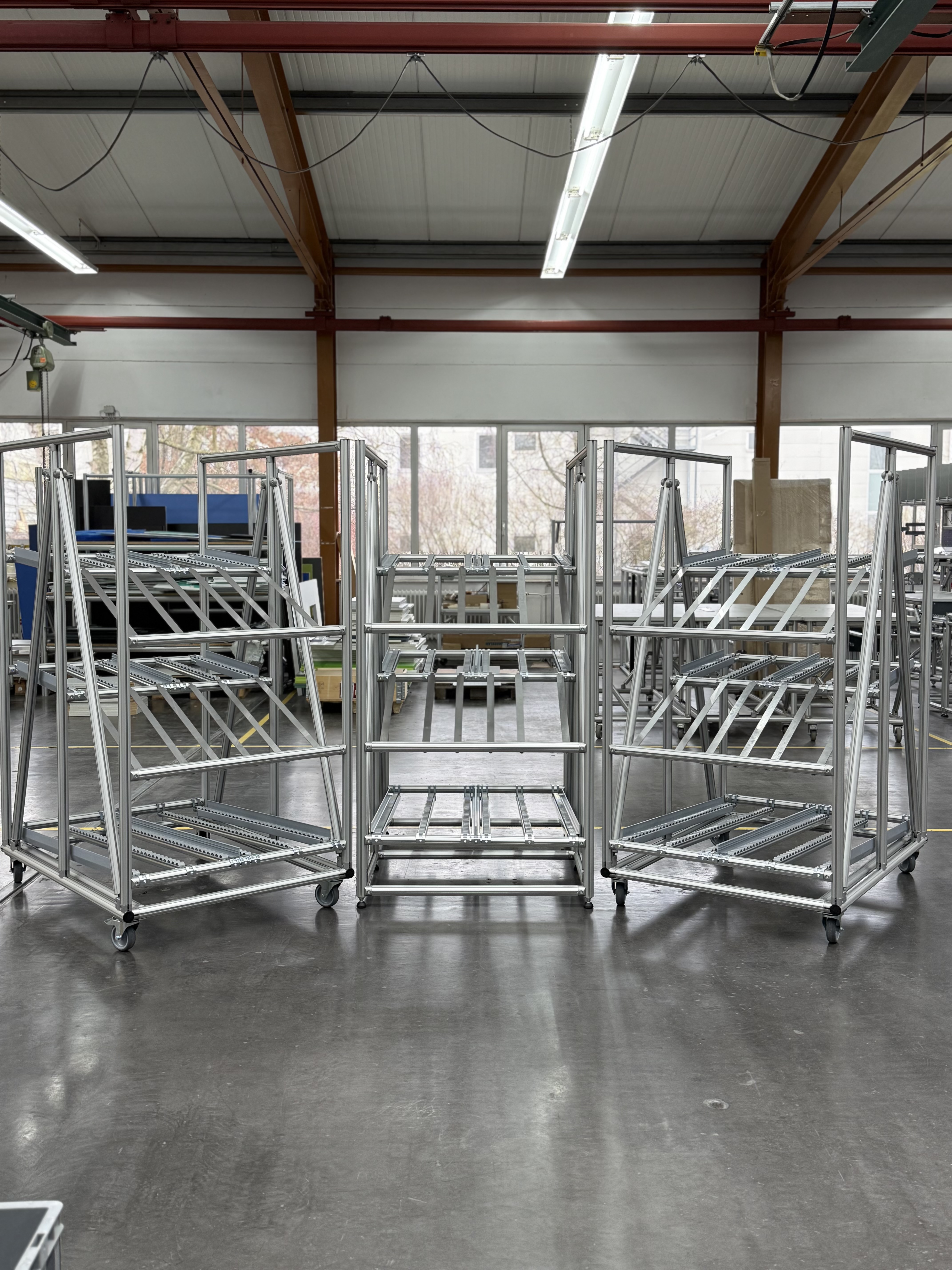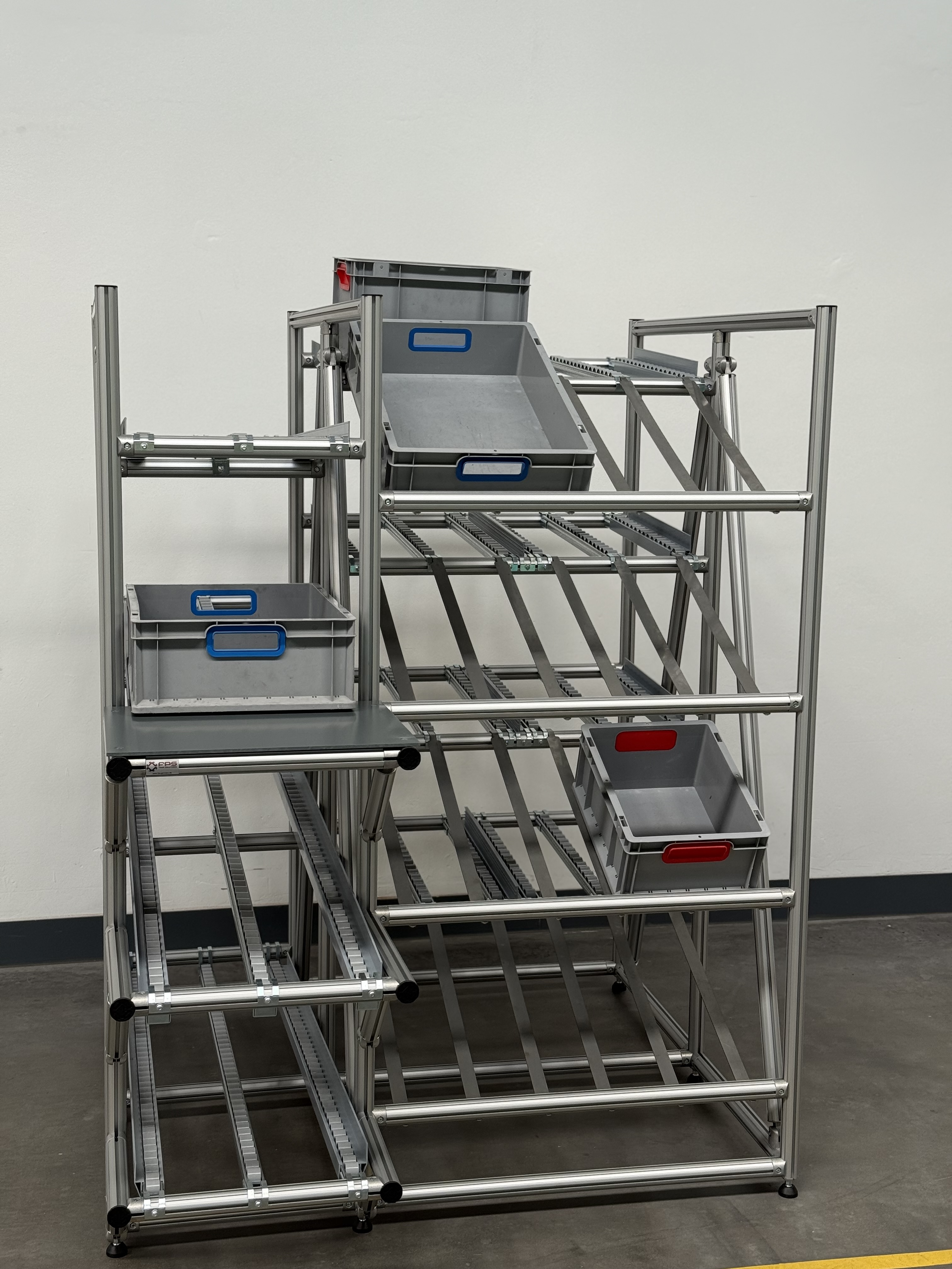 Beispielbilder unserer Regale und FIFO-Regale – so sehen die Systeme im praktischen Einsatz aus.