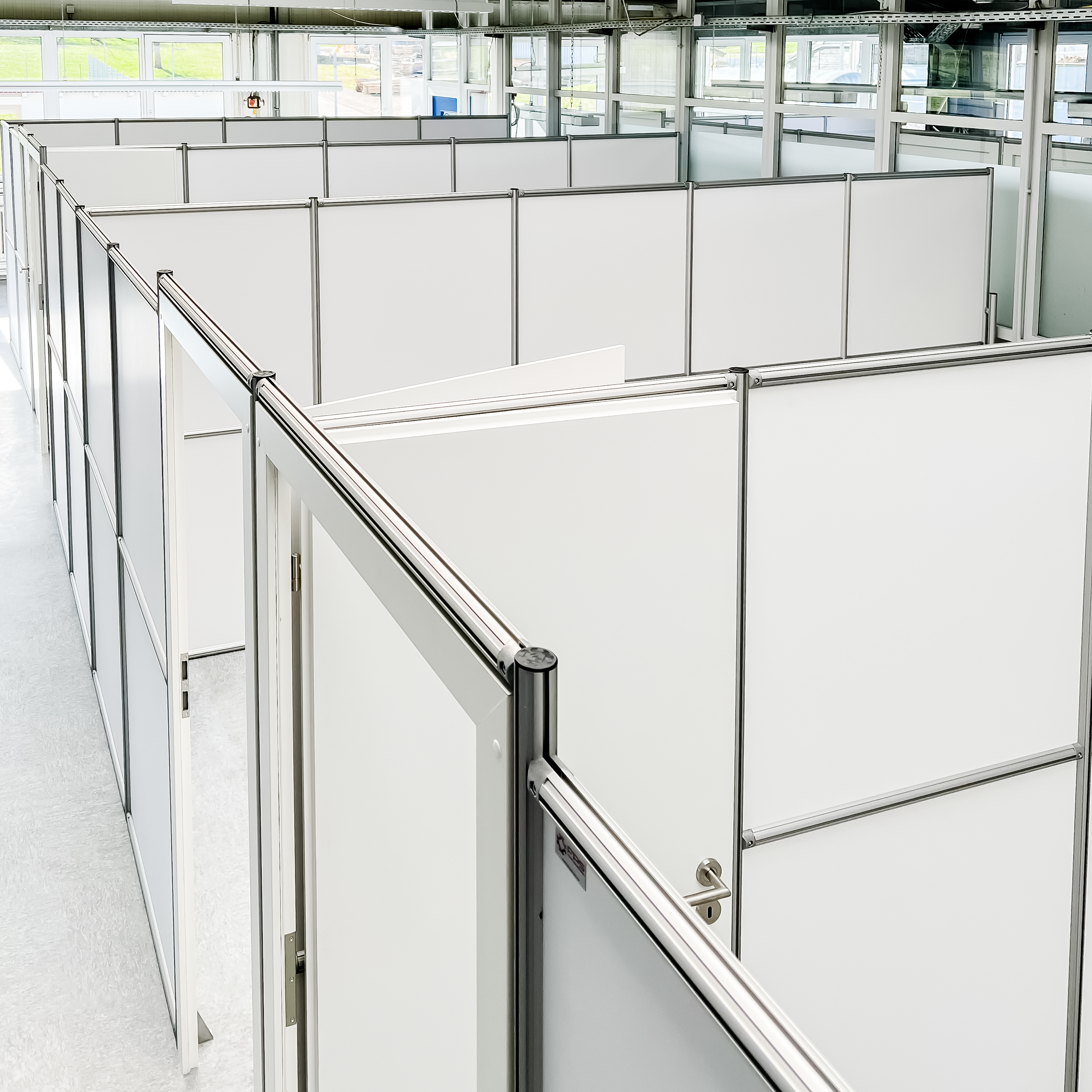 Beispielbilder unserer Raumsysteme Box², Box Light und Trennwände – so sehen die Lösungen in der Praxis aus.