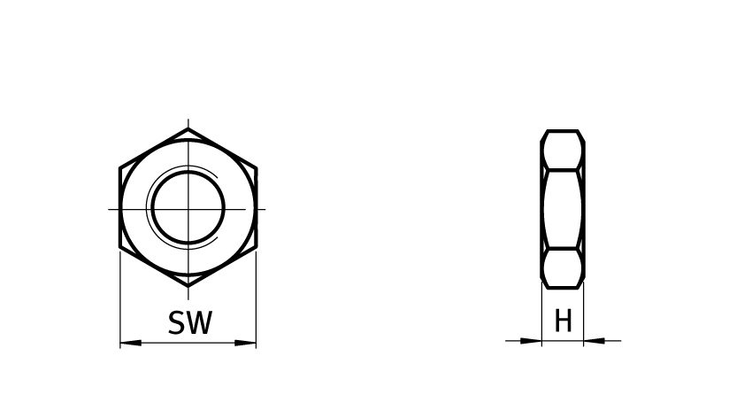 Flache Kontermuttern nach DIN 439 (ISO 4035) Form B für Gewindestangen.