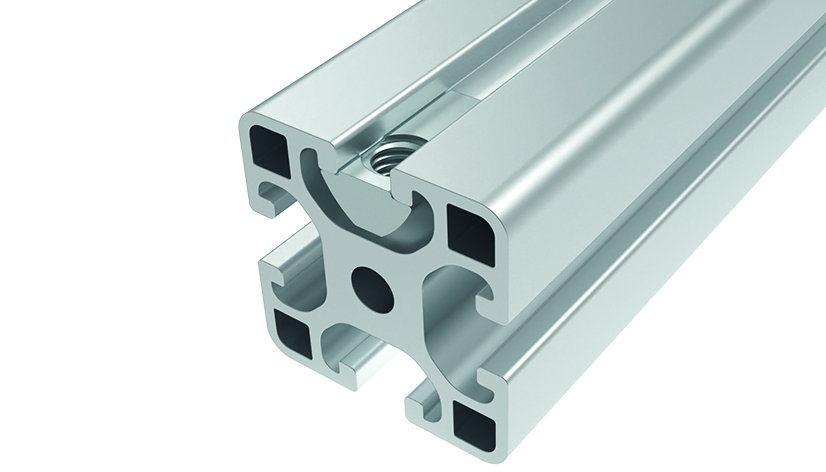 Einschwenkbarer Nutenstein ESD Nut 8 M6 mit Führungssteg und integrierter Federkugel.