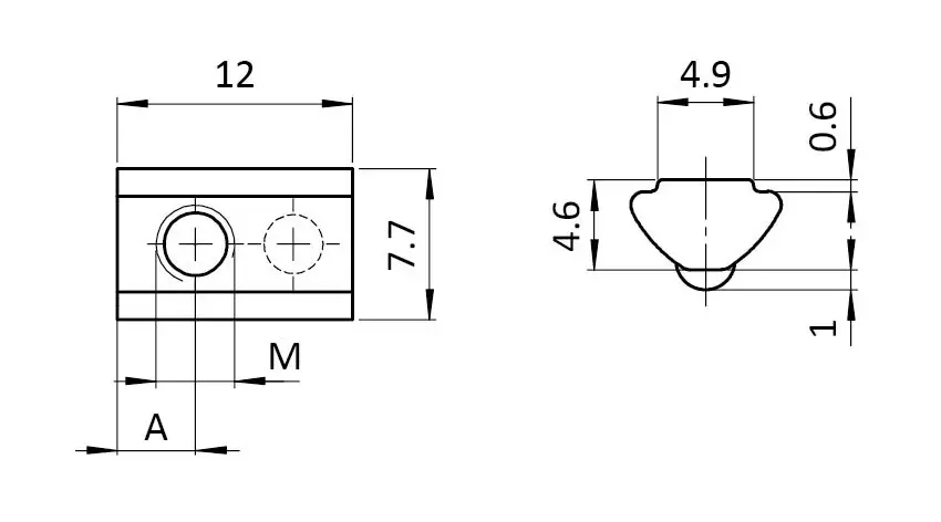 Nutenstein Nut 5 M5 12x7,7mm, einschwenkbar, Führungssteg, I=12mm