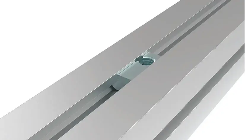 Nutenstein Nut 8 M6 mit Führungssteg hoch und Federkugel.