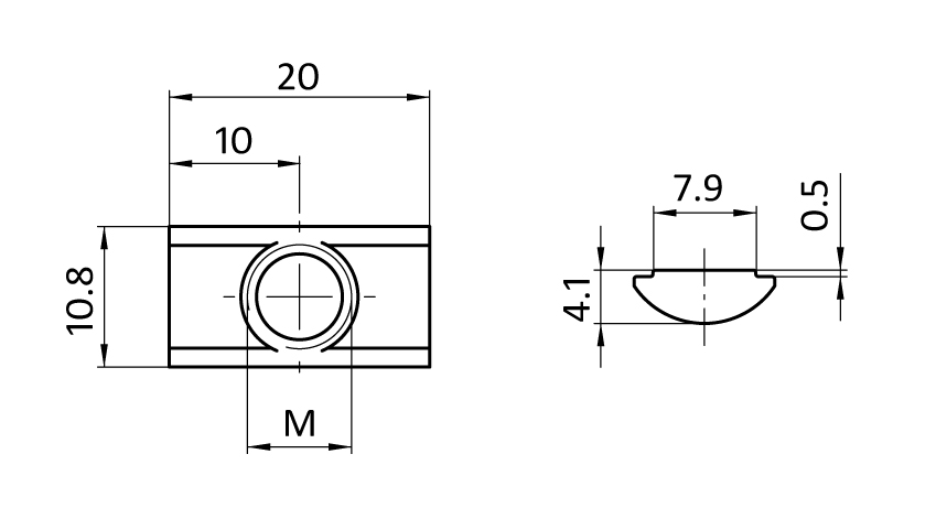 Nutenstein Nut 8 M8 10,8x4,1mm, einschwenkbar