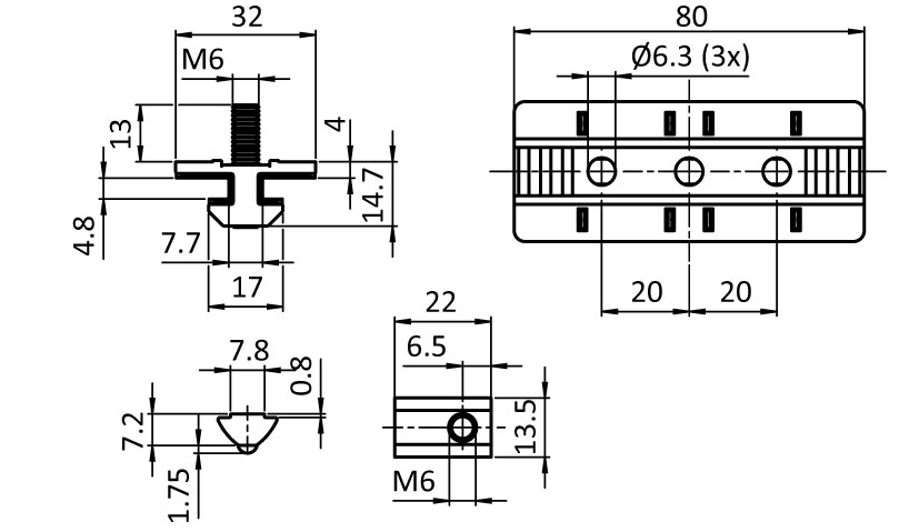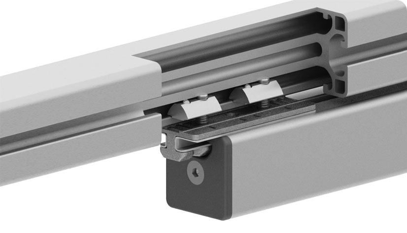 Für die flexible Fürhung von Profilen mit Nut 8 und Festlager.