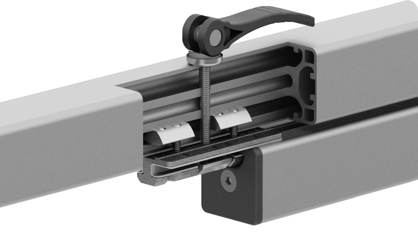 Für die flexible Führung von Profilen mit Nut 8 und Loslager sorgt eine zusätzliche Klemmung des Schlittens für erweiterte Einsatzmöglichkeiten, beispielsweise als schnell einstellbarer Endanschlag.