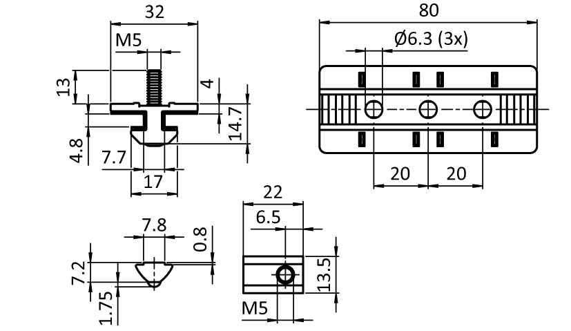 - 2x Nutenstein - Nut 8 - M5
