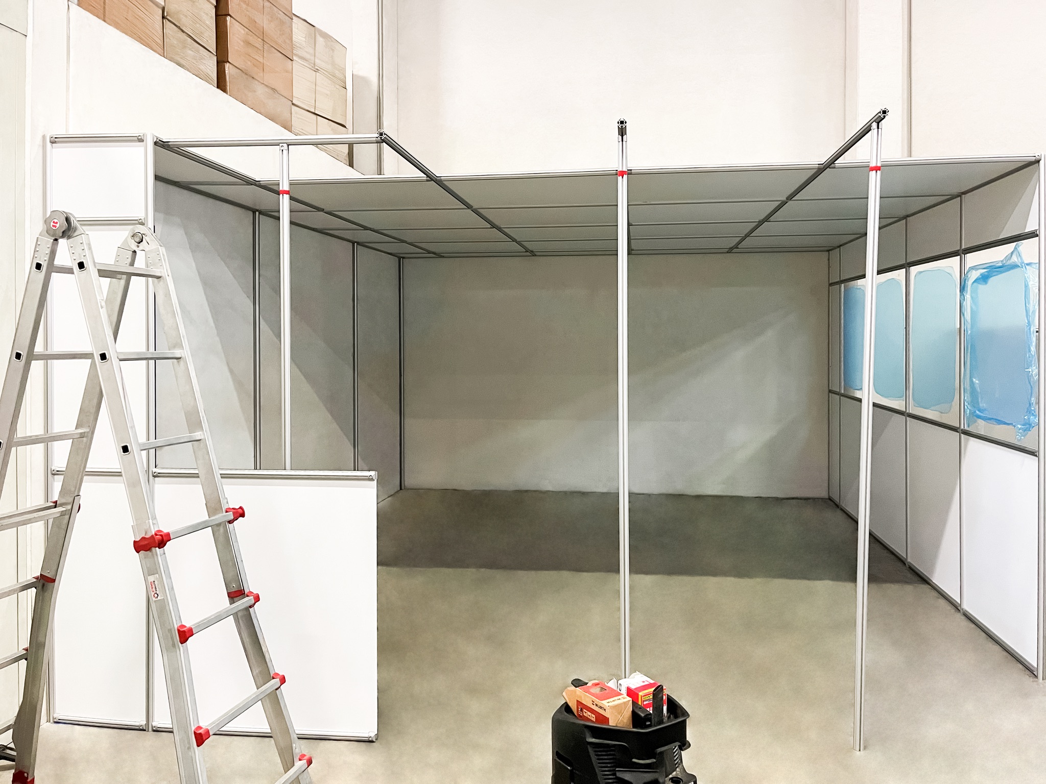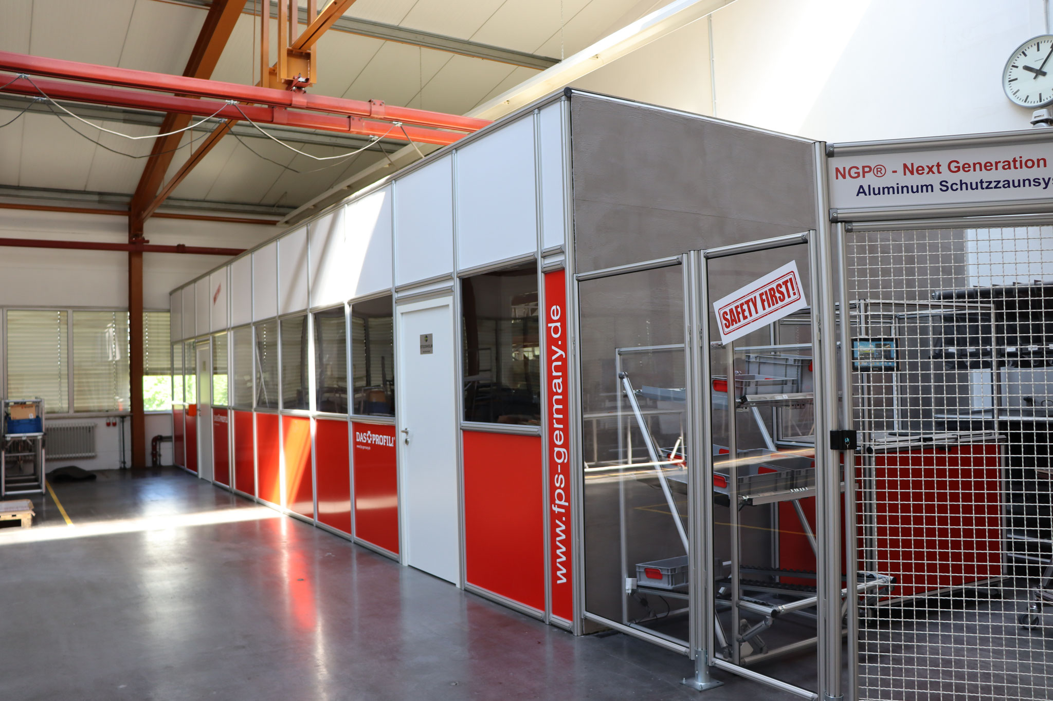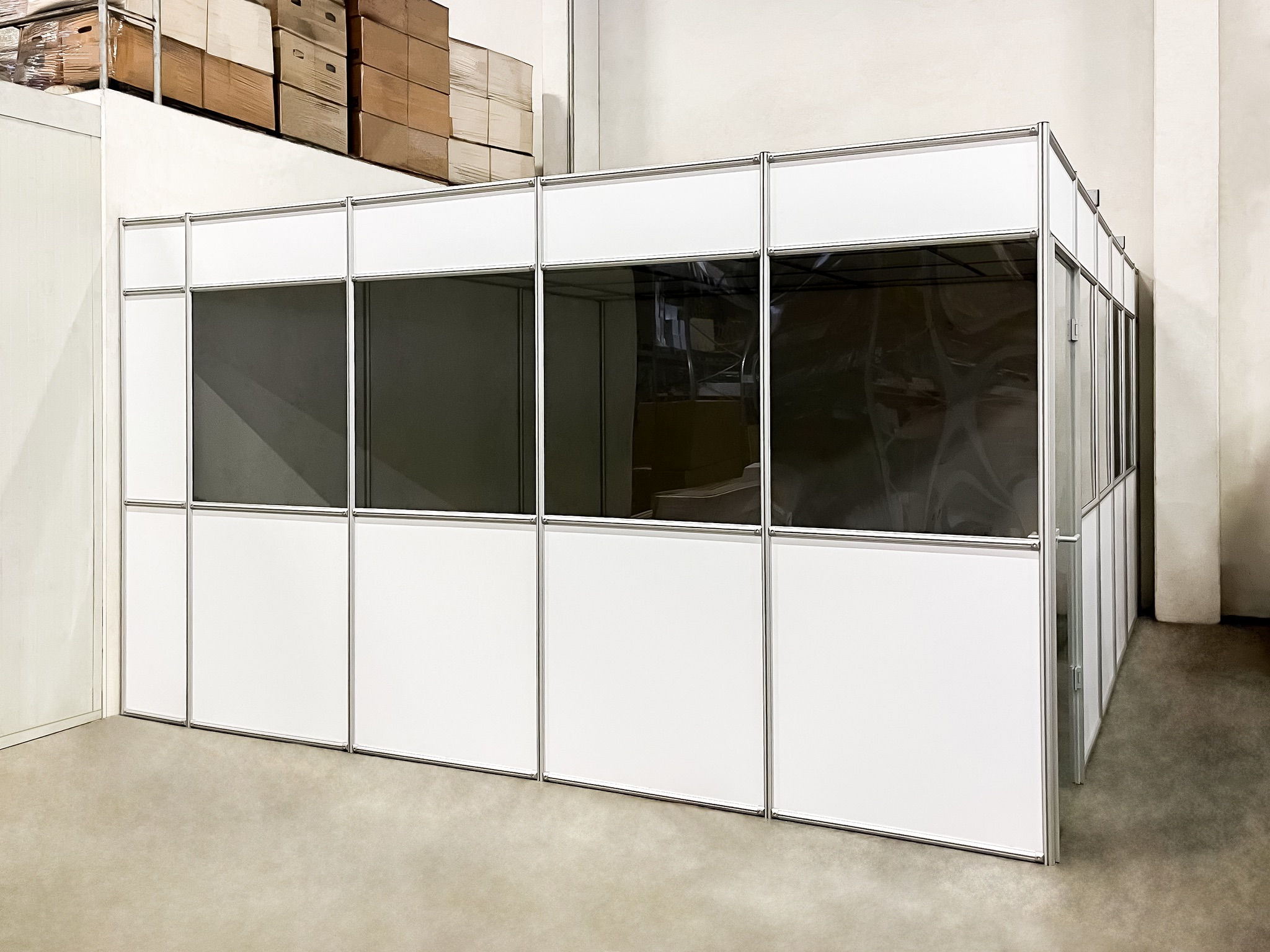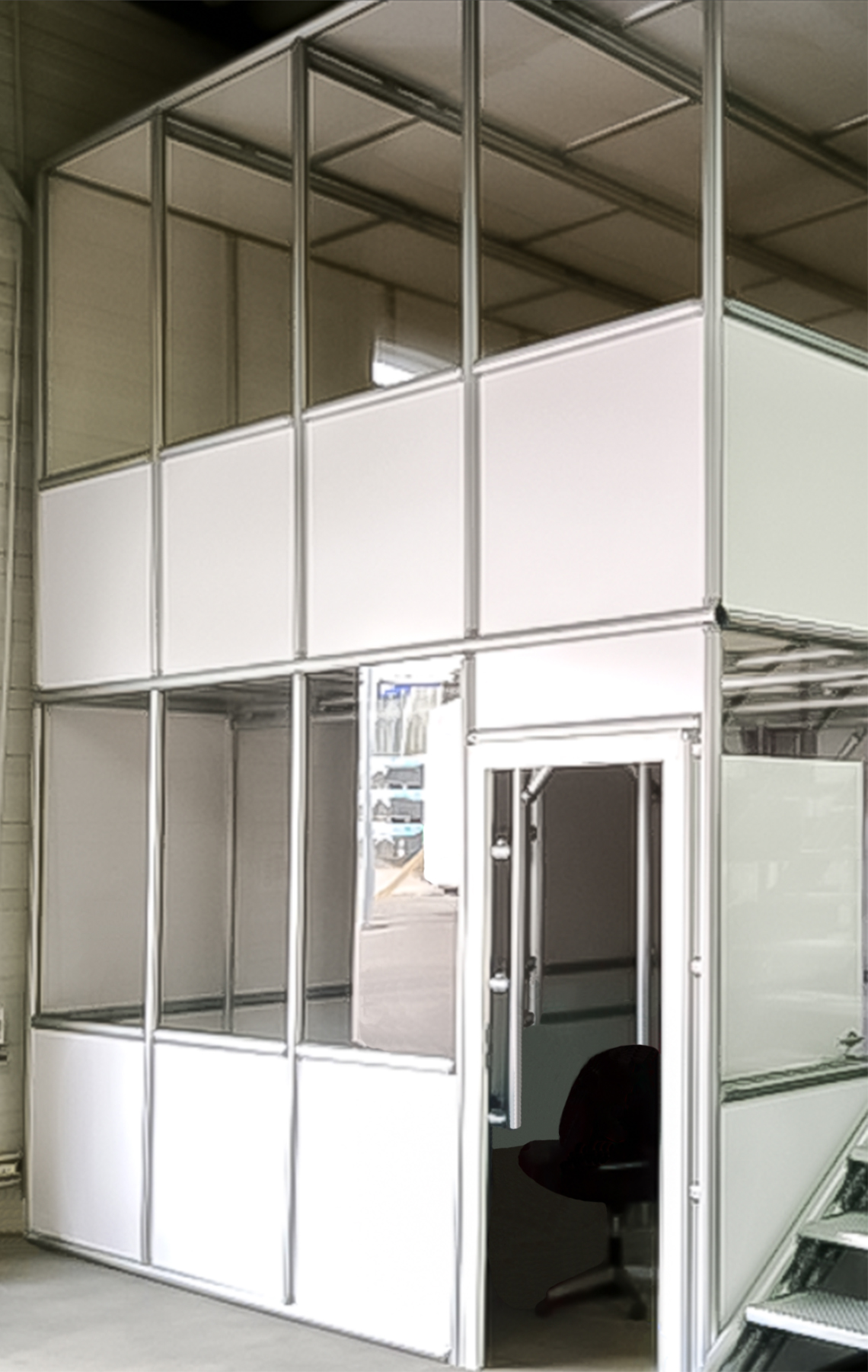 Mit einem Hallenbüro, auch Meisterbüro genannt, einem Sauberraum oder auch Besprechungs- und Pausenraum können Prozesse in Industriehallen abgegrenzt werden. Aufgebaut auf unserem Aluminiumprofil System sind Sie in der Gestaltung absolut flexibel. Die Raumaufteilung auf einer oder zwei Etagen ist genauso möglich, wie das Umbauen und Integrieren von zum Beispiel vorhandenen Installationen. Mit verschiedenen Füllmaterialien können Ansprüche an Optik und Eigenschaften, wie die Akustik-Optimierung, eingeplant werden.