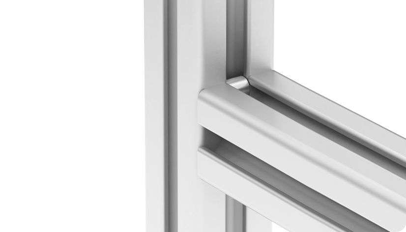 Um zwei Aluminiumprofile miteinander zu verbinden, durchbrechen spezielle Zähne die Eloxalschicht. Dadurch entsteht eine stabile und leitfähige Verbindung, die elektrostatische Aufladungen sicher ableitet.