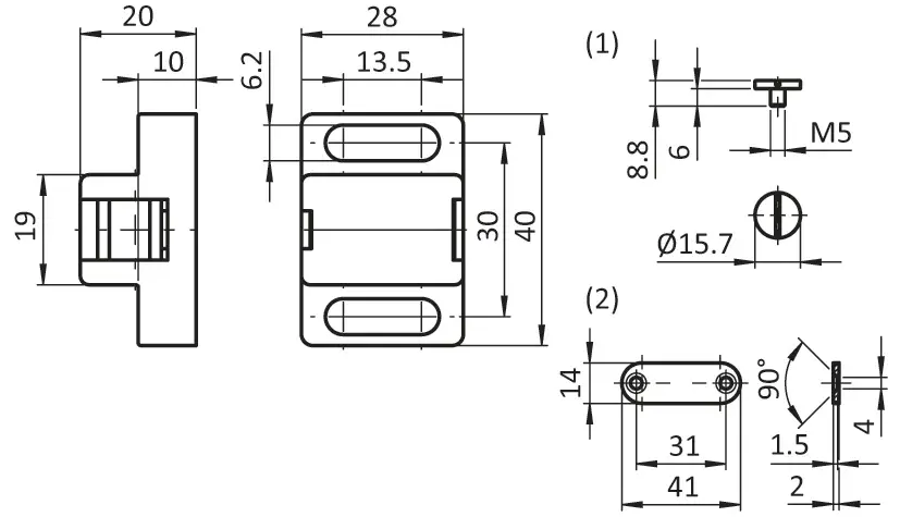 - 1x Halteplatte 14x41x2 mm.