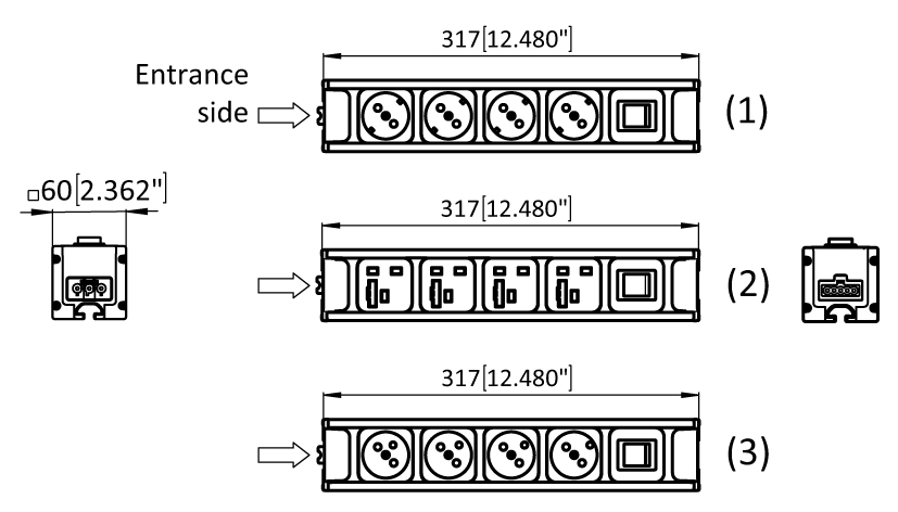 Steckdosenleiste Modul F Line 317 5-Fach 4x, Ausgang dimmbar, ESD