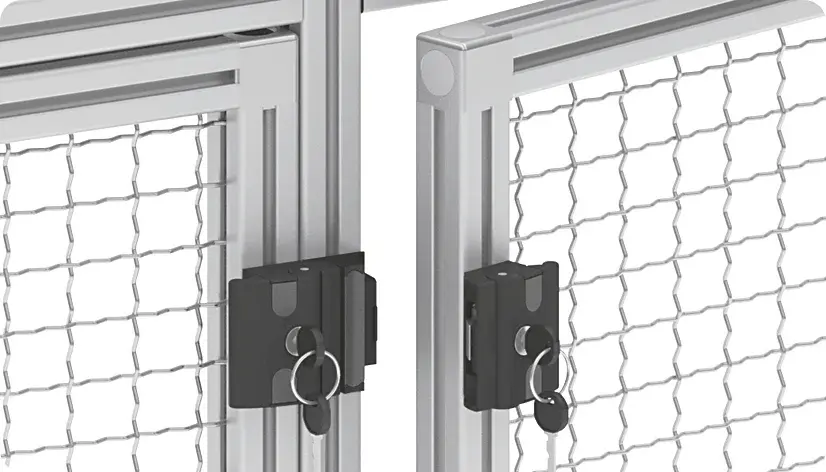 Zum leichten und sicheren Verschließen von Türen und Klappen. Montage ohne mechanische Bearbeitung. Im geschlossenen Zustand gegen Demontage gesichert.