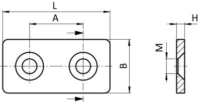 Verbinderplatte ST rechteckig 2-Loch, 1 Nut