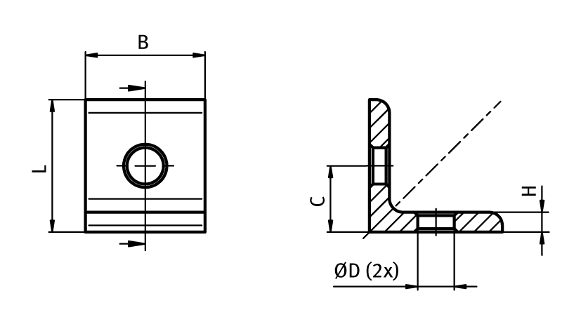 Verbindungswinkel AL 2-Loch, 1 Nut