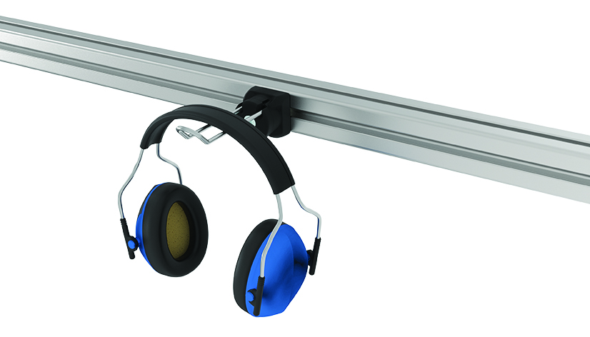 Einsatzbereiter Werkzeughaken, 360° drehbar, speziell für Aluminiumprofile. Ideal zum Organisieren von Arbeitsplätzen.