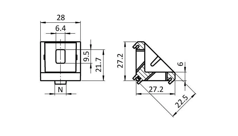Winkel, 28x27x27 mm, für M6, Alu Druckguss, blank