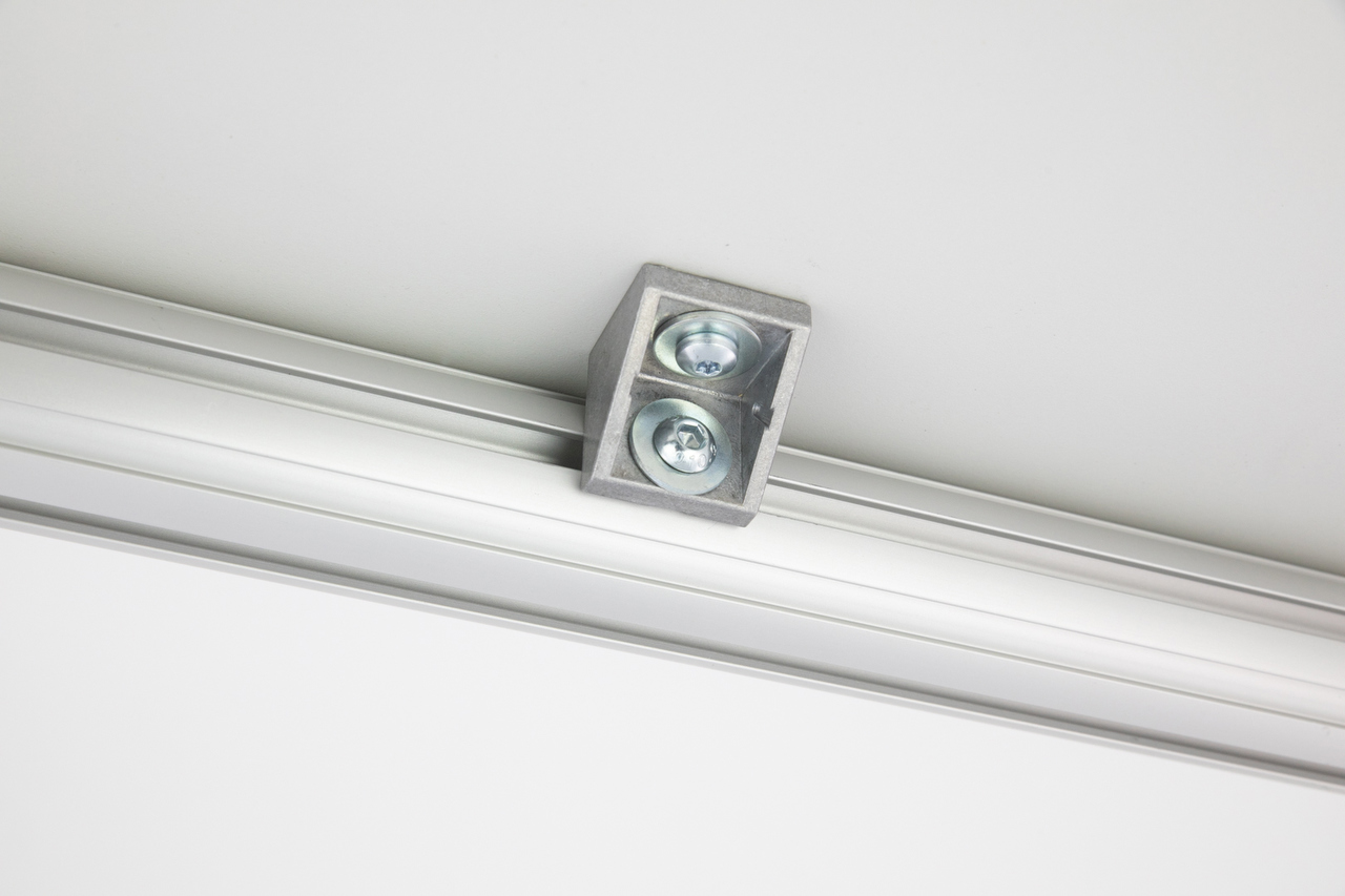 Zur rechtwinkligen Verbindung von Flächenelementen an NGP40. Die offene diagonale Fläche des Winkels kann durch eine Abdeckkappe verschlossen werden.
