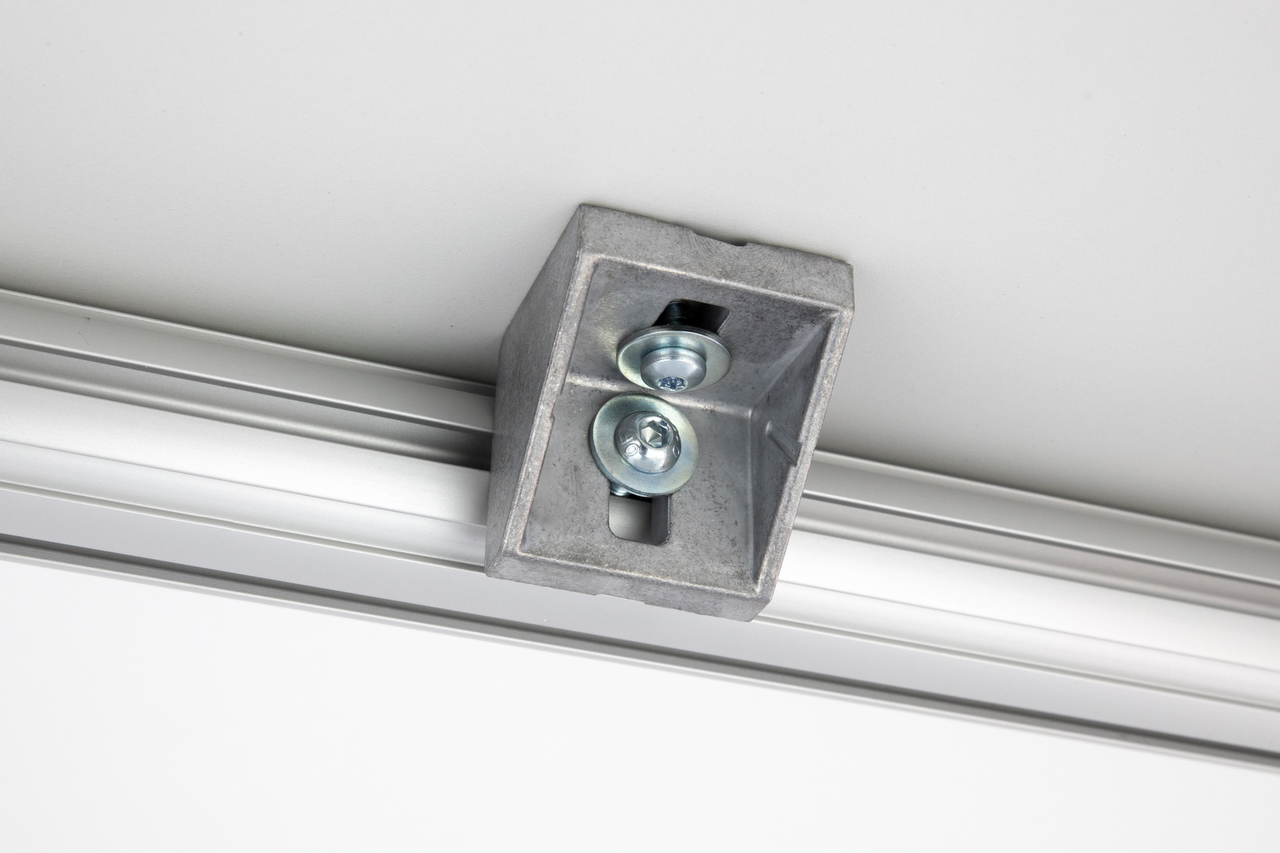 Zur rechtwinkligen Verbindung von Flächenelementen an NGP60. Die offene diagonale Fläche des Winkels kann durch eine Abdeckkappe verschlossen werden.