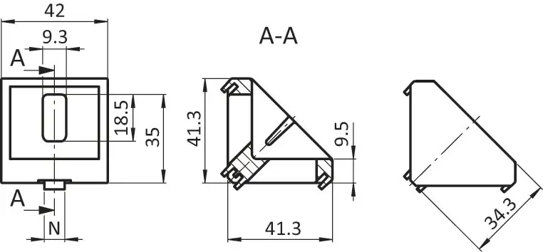 Winkel, 42x42x42 mm, für M6 - M8, Alu Druckguss, blank